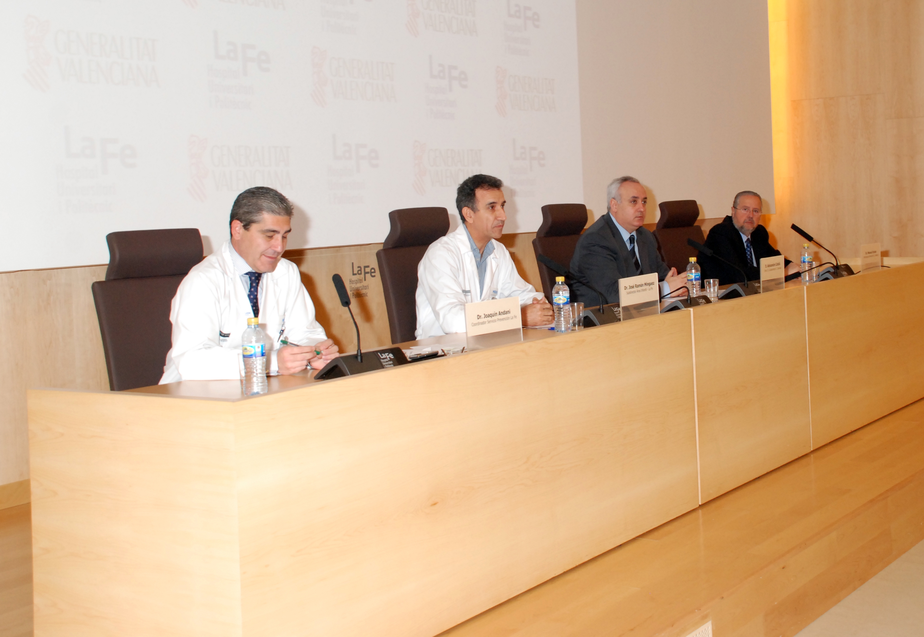 El I Foro de servicios de Prevención de la Agencia Valenciana de Salud ha sido inaugurado por el Subsecretario de la Conselleria de Sanitat, Alexandre Catalá; el Gerente del Departamento de Salud Valencia - La Fe, Melchor Hoyos; el jefe del servicio de Prevención de Riesgos Laborales de la Conselleria de Sanitat, Manuel Enciso, y el Coordinador Médico del Servicio de Prevención del Hospital Universitari i Politècnic La Fe, Joaquín Andani.